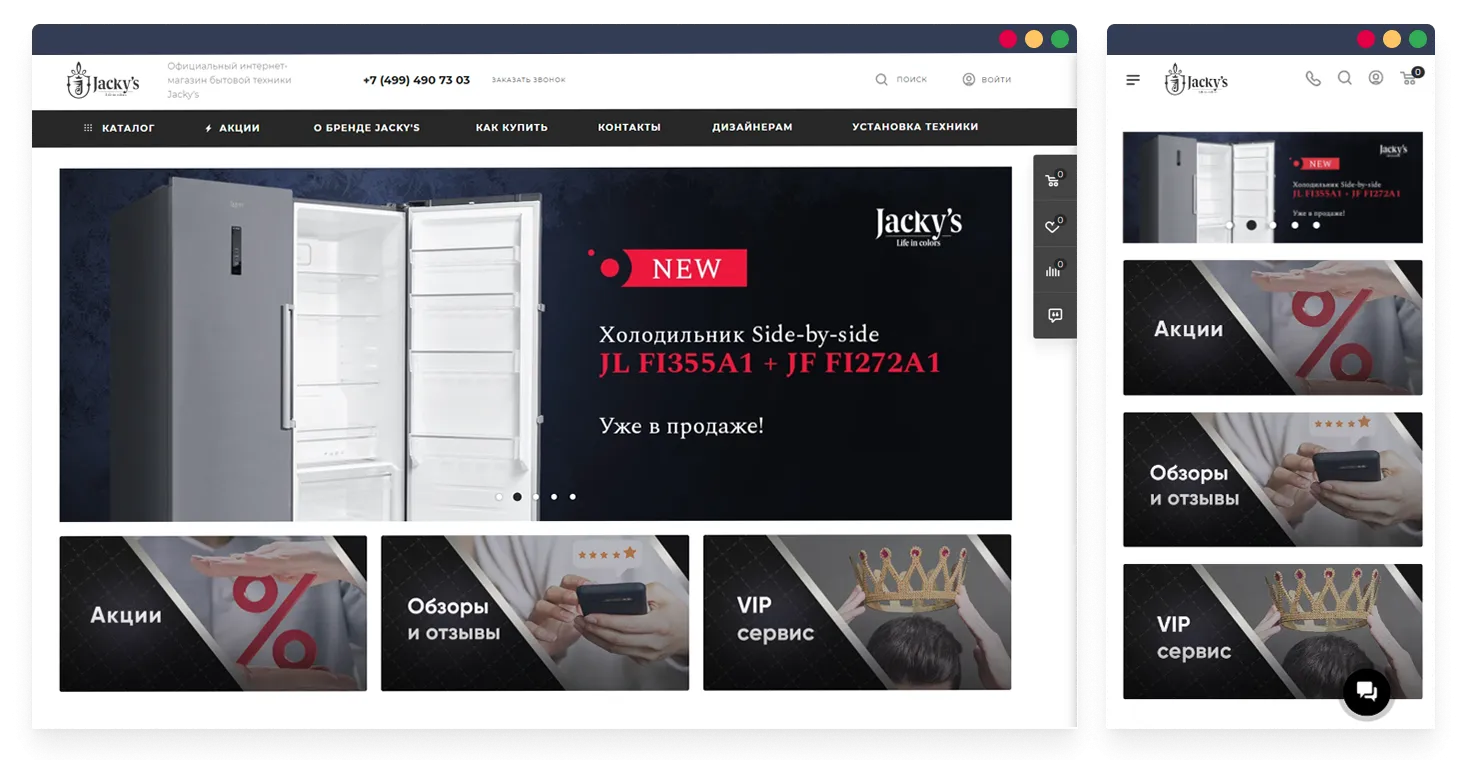 Главной задачей нашей команды было создать удобный и функциональный сайт, наполнить его товарами из 1С, настроить возможность разграничения цен для работы с розничными и оптовыми клиентами. Продумать интерфейс, тщательно проработать оформление, наполнить страницы контентом и настроить фильтр по свойствам товаров в каталоге.